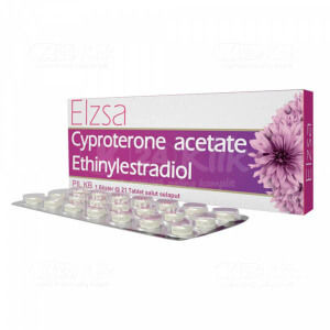 ELZSA TAB 21S STRIP 1S memiliki kandungan bahan aktif 2 mg Cyproterone acetate dan 0,035 mg Ethinylestradiol. Cyproterone acetate yang terdapat dalam Elzsa menghambat pengaruh androgen yang juga diproduksi wanita sehingga dapat mengatasi penyakit yang disebabkan oleh peningkatan produksi androgen atau sensitivitas tertentu terhadap hormon-hormon ini. Pada saat Elzsa diminum, peningkatan fungsi kelenjar sebasea yang berperan penting dalam terjadinya jerawat dan seborea akan berkurang. Setelah 3-4 bulan terapi, efflorensi jerawat akan sembuh. Umumnya, kelebihan lemak di rambut dan kulit lebih dulu hilang.